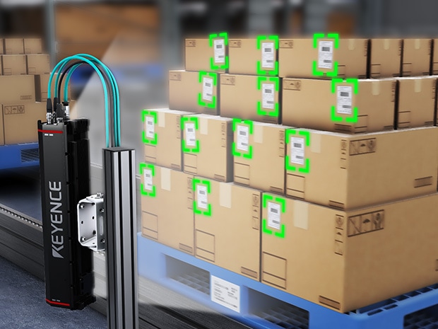 On pallet conveyance lines in logistics warehouses and manufacturing sites, accurately and quickly reading the barcodes on a large number of multi-stacked cardboard cases is key to improving work efficiency. However, manual scanning is time-consuming and carries risks such as shipping errors and inventory discrepancies due to reading mistakes.