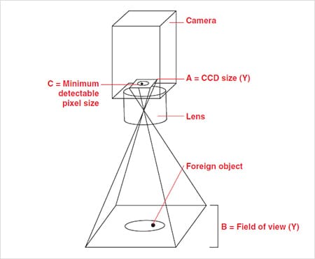 Machine vision users are often concerned about finding the minimum detectable size of their defects or flaws. The following calculation will determine the machine vision system's minimum detectable flaw size: